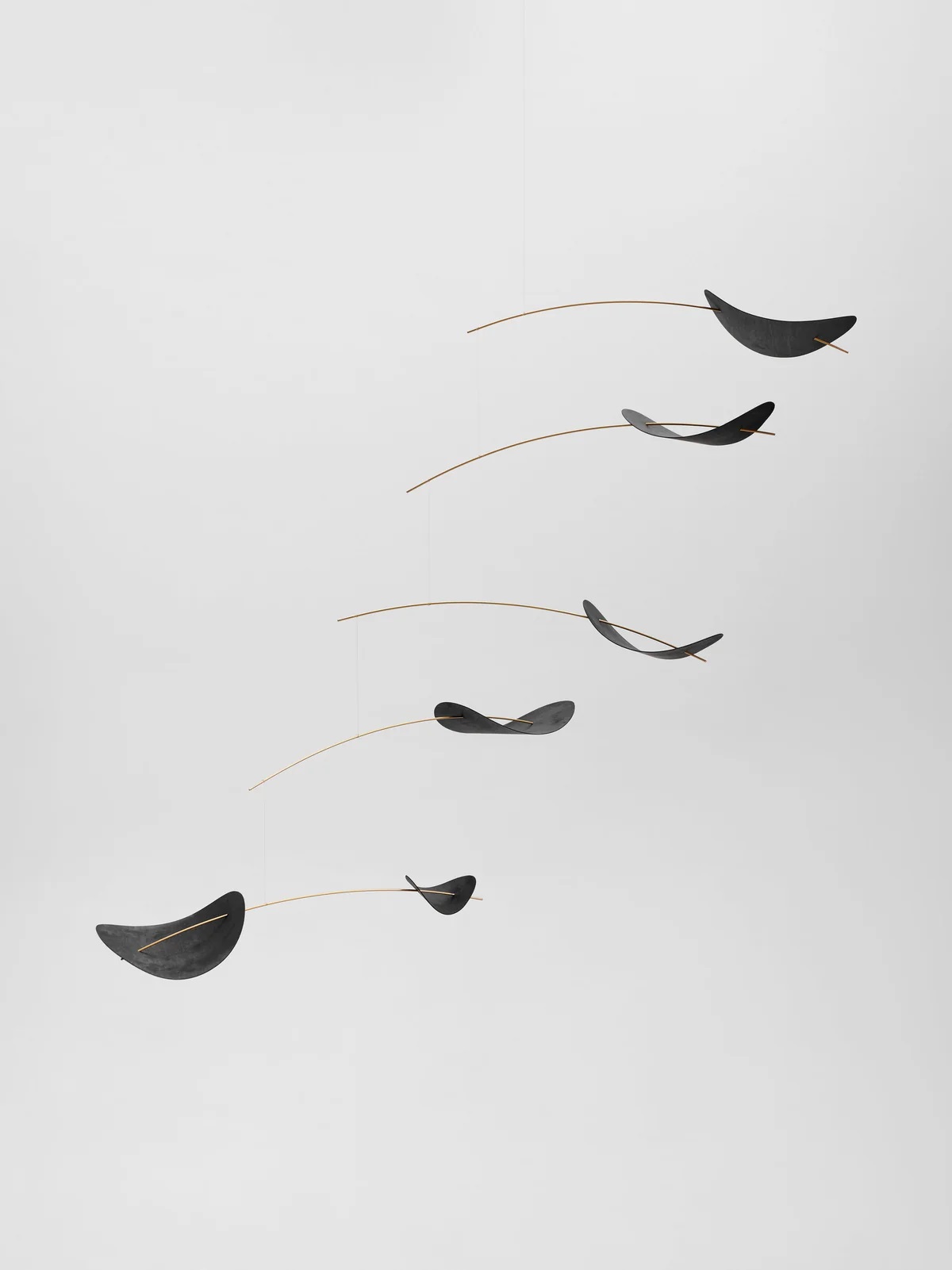 Schauen Sie sich die Bewegungen dieses eleganten Mobiles an und stellen Sie sich dabei vor, wie Sie an einem warmen Sommertag auf einer Wiese liegen und die treibenden Wolken am blauen Himmel beobachten. Seit November 2017 auch in schwarz lieferbar (manchmal ziehen ja auch im Sommer Gewitter mit dunklen Wolken auf) DAs Drifting Clouds Mobile vereint natürliche Farbtöne mit goldenen Akzenten und verbindet so die Leichtigkeit skandinavischen Designs mit der Robustheit der Natur. Dieses Bestseller-Designobjekt eignet sich ideal für großzügige Wohnbereiche und als imposantes Kunstwerk im Büro.