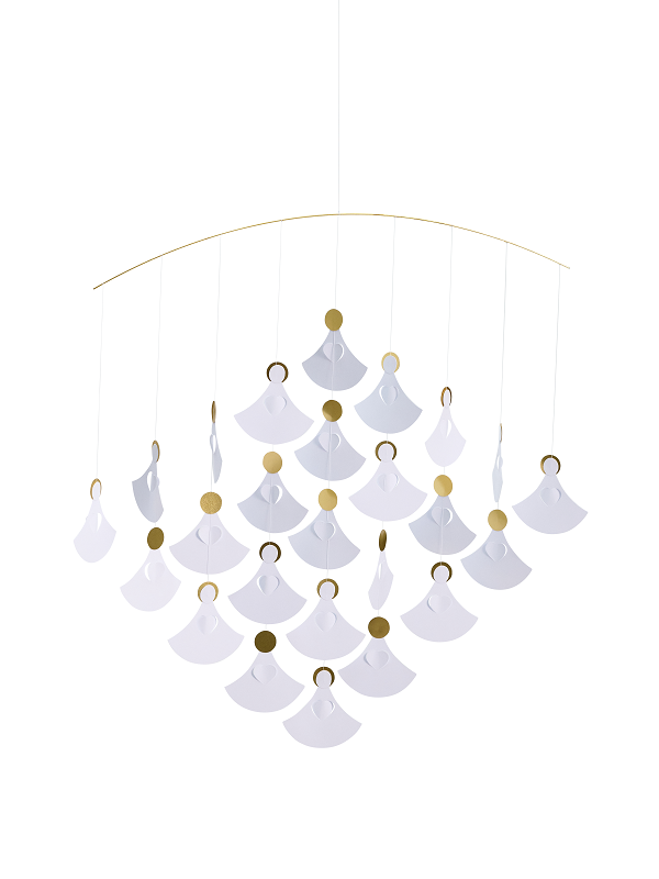 Genießen Sie das ganze Jahr über den anmutigen Chor von Engeln, deren Herzen ihnen Flügel verleihen. Der funkelnde Heiligenschein der Engel und eine sorgfältige Beleuchtung können faszinierende Lichtreflexe bei diesem anmutigen Mobile hervorzaubern. Bei uns erhältlich in 3 Größen mit 9, 16 oder 25 Engeln.