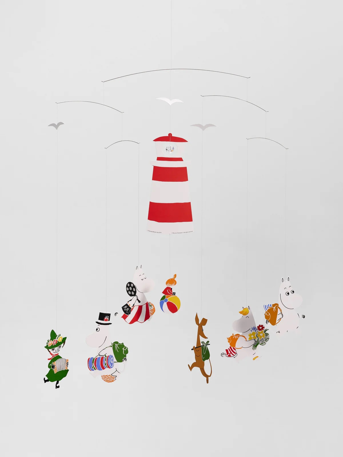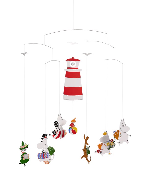 1914 wurde die Schöpferin der beliebten Moomins, Tove Jansson, geboren. Um dieses Jubiläum zu feiern, hat Flensted Mobiles eine 2014er-Version dieses beliebten Mobiles herausgebracht. Dieses neue Moomin-Mobile zeigt als Motiv, wie die liebenswerten Moomins Moominvalley verlassen, um auf eine abenteuerliche Picknick-Tour zu gehen.