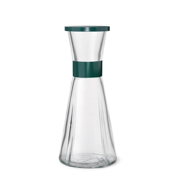 - Die Rosendahl Grand Cru-Karaffe, die mit Details in einem harmonischen tiefen Waldgrün verziert ist
